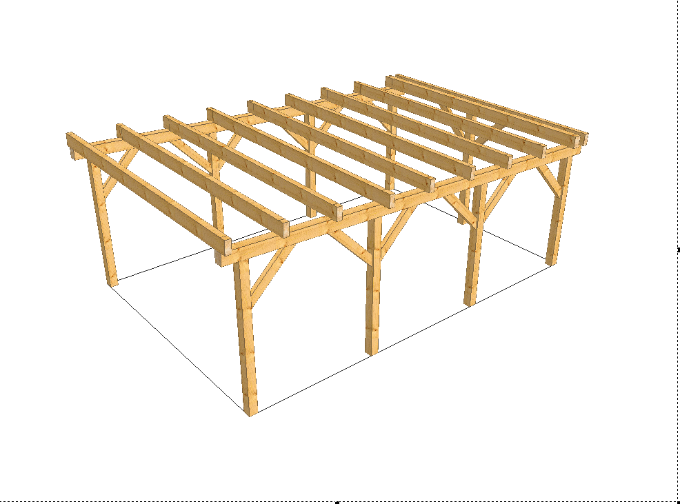 Unser Carportbausatz "Alter Wanderweg" in den Abmessungen aus Brettschichtholz (BSH 11) in 6,00m x 9,00m. Das Dach ist mit Trapezblechen eingedeckt (inkl. Vlies) und verfügt über eine Zinkdachentwässerung. Der Geräteraum hat die Maße 6,00m x 3,00m und ist mit einer Deckelschalung verkleidet. Die Ständerfüße (verdeckt geschraubt) sind in die Pfosten bereits vormontiert. Die Lieferung erfolgt bis Bordsteinkante. Der Bausatz umfasst die Holzkonstruktion, die Bleche, die Rinne, Pfostenträger, Fassadenbretter und notwendigen Schrauben. Die Holzpositionen sind unbehandelt.